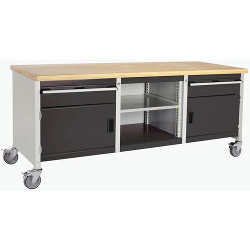 Monoblok-arbejdsbænke med hjul med en diameter på 125 mm.