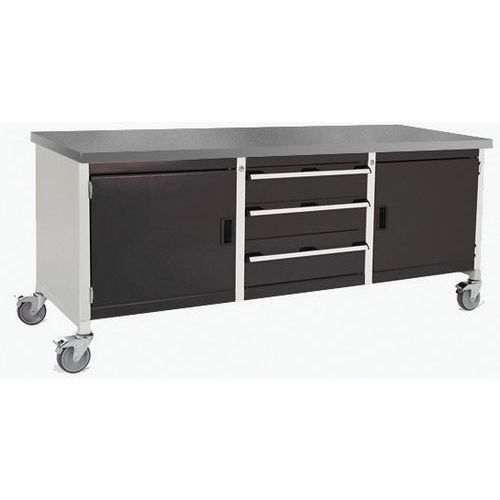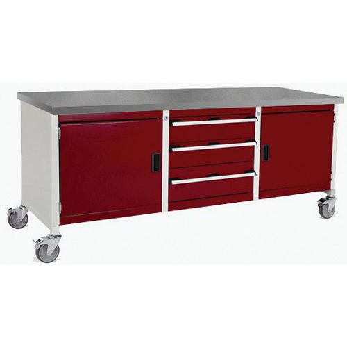 Monoblok-arbejdsbænke med hjul med en diameter på 125 mm.