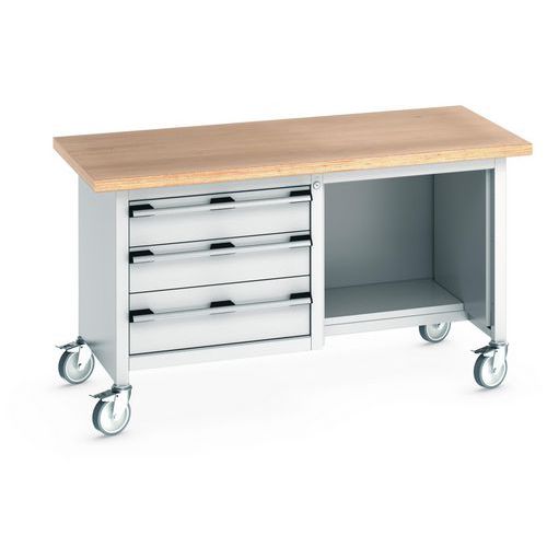 Cubio mobilt monoblok arbejdsbord – bøgetræsplade og skuffe – Bott Cubio mobilt monoblok arbejdsbord – bøgetræsplade og skuffe – Bott