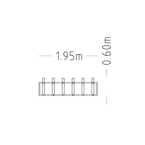 | Varenavn | Cykelstativ Gemini, Totallængde: 1950 mm, Antal pladser: 6, Totalbredde: 1950 mm, Totalhøjde: 600 mm |