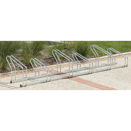 Cykelstativ række, 4-6-8 pladser, Totallængde: 2370 mm, Antal pladser: 6, Model: Liggende, Totaldybde: 410 mm