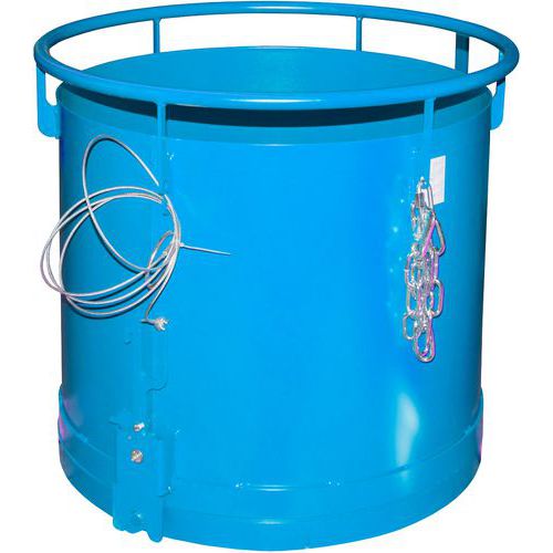| Varenavn | Cylindrisk beholder RB med bundtømning, Volumen: 300 L, Farve: Blå, Model: RB300, Maksimal last: 500 kg |