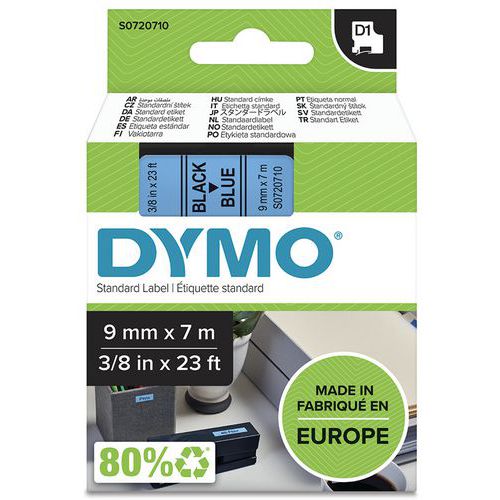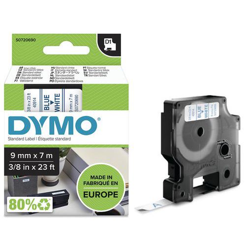 | Varenavn | D1-tapekassette, bredde 9 mm – Dymo, Baggrund, farve: Hvid, Type: S0720690, Bånd, længde: 7 m |