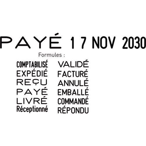 | Varenavn | Datostempel, Antal rækker: 1, Aftryk, bredde: 4 mm, Aftryk, længde: 48 mm, Blæk, farve: Sort |