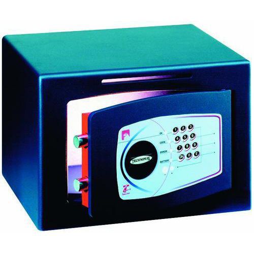 - Øger beskyttelsen ved kontinuerlig håndtering af pengekasser. Er som standard udstyret med elektronisk kodelås med tidsforsinkelsesfunktion. Gennem deponeringsrummet (8 x 170 mm) over døren, der er udstyret med fiskebeskyttelse, er det nemt at deponere sedler, uden at man behøver at åbne døren. Fremstillet i 5 mm stålplade og kan boltes fast i gulv eller væg. Bolte medfølger. Tidsforsinkelsesfunktion (1-90 min.). Elektronisk kodelås, uden nøgler. Udstyret med nødåbningsfunktion. Lysåbning = 170 x 290 x 295 mm.