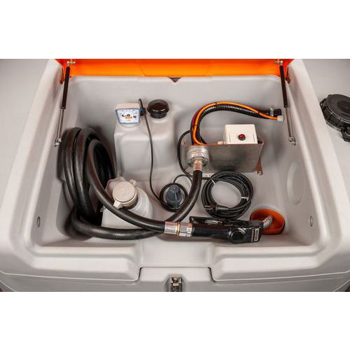 - Dieseltank Cube Basic er udstyret med elektrisk pumpe, 230 V.