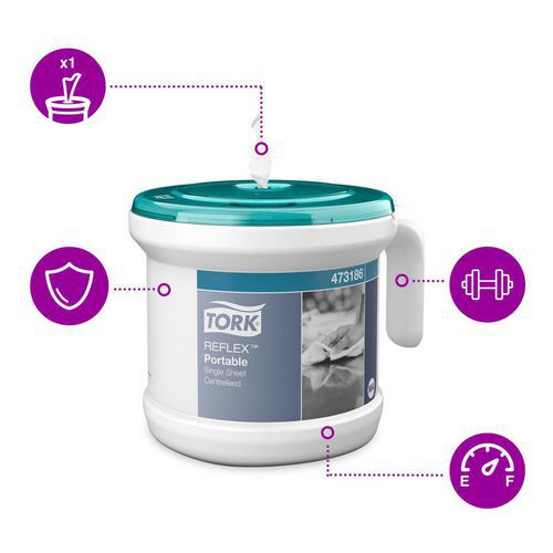 | Varenavn | Dispenser til midterrulle, Farve: Hvid/blå, Højde: 258 cm, Bredde: 226 mm, Dybde: 240 cm |