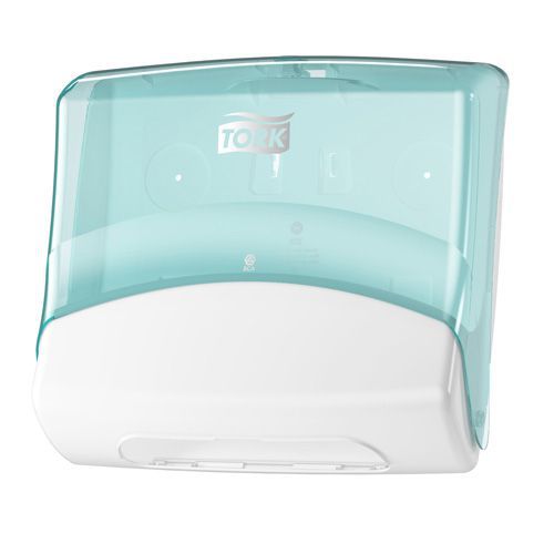Dispenser til foldede klude W4, Farve: Turkis, Højde: 394 mm, Bredde: 427 mm, Dybde: 206 mm, Materiale: Plast