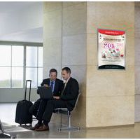 Dobbeltsidet plakat på glasskærm takket være dobbeltsidet ramme.