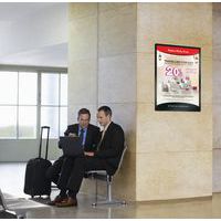 Dobbeltsidet plakat på glasskærm takket være dobbeltsidet ramme.