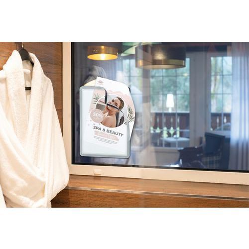 Bemærk, repositionerbart klæbemiddel til visning på alle glatte og rene overflader (kan fjernes og fastgøres igen uden at efterlade mærker). Undgå langvarig eksponering for direkte varmekilder (sol, lamper osv.).