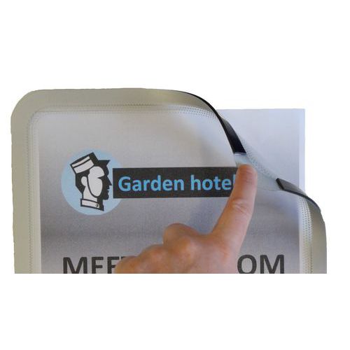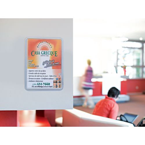 - Magnetisk bagside, der sidder fast på alle metalflader. Spar tid: Placer dokumentet, hvor du vil have det, og sæt bagefter rammen lige ovenpå. Ru, mat overflader forbedrer læsbarheden. Afrundede hjørner giver en unik indramning. Kan bruges i stående eller liggende format. Undgå at udsætte Magneto for længerevarende direkte varme (sol, lys osv.).