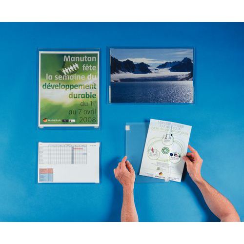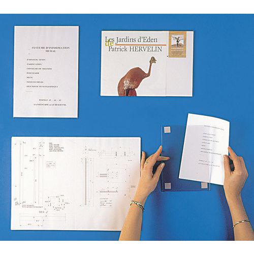 - Dobbeltsidede skumgummipuder holder dokumentlommen på plads selv på glatte overflader.