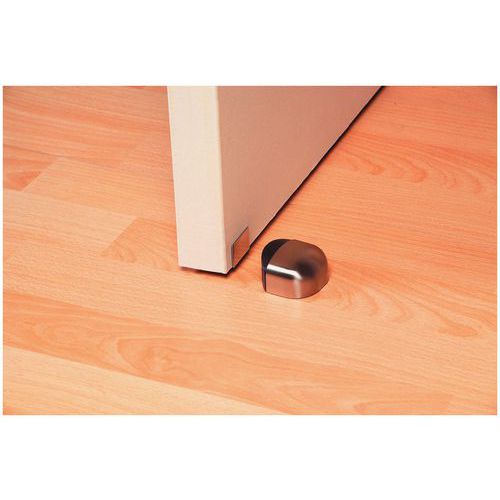- Magnetisk system til døre på op til 35 kg. Dørstop i rent design, gulvmontering. Enkel montering. Støddæmper af elastomer, efterlader ingen spor nederst på døren. Gennemsigtig kile, der løfter hele dørsystemet, fungerer også som skabelon.