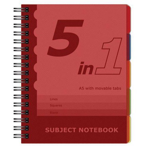 | Varenavn | Emneblok A5, Farve: Rød, Udvælgelse distancearbejde: nej, Format: A5, Model: Inddeling: 5 flytbare faner |