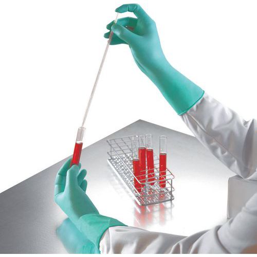 Giver stærk kemisk stænkbeskyttelse mod de fleste syrer og alkoholer og EN 374 Type B kemisk resistenscertificering. Teksturerede fingerspidser og neoprenmateriale forbedrer grebet i tørre og våde omgivelser. Certificeret kemisk stænkbeskyttelse: beskyttelse mod syrer/alkoholer. Latexfri formulering forhindrer type 1 (latex) allergiske reaktioner. Disse MICROFLEX®-handsker er polymerbelagte og er nemme at tage på. Anti-allergi materiale: Forhindrer allergiske reaktioner på type I latex. Giver stærk kemisk stænkbeskyttelse mod de fleste syrer og alkoholer og EN 374 Type B kemisk resistenscertificering. Teksturerede fingerspidser og neoprenmateriale forbedrer grebet i tørre og våde omgivelser. Certificeret kemisk stænkbeskyttelse: beskyttelse mod syrer/alkoholer. Latexfri formulering forhindrer type 1 (latex) allergiske reaktioner. Disse MICROFLEX®-handsker er polymerbelagte og er nemme at tage på.