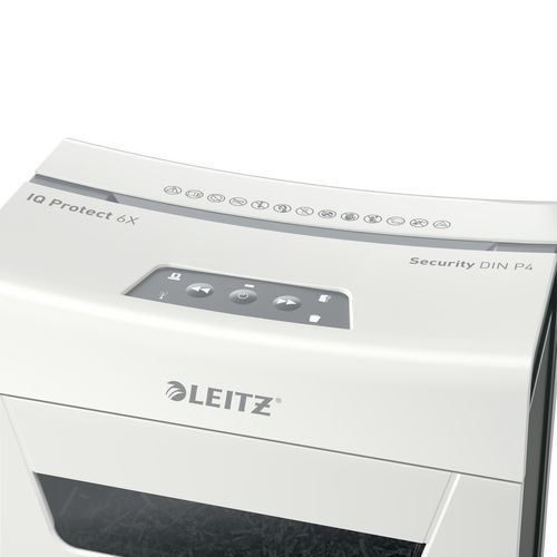 - Leitz IQ Protect Premium 6X makulator er en kompakt og støjsvag løsning til sikker dokumenthåndtering.