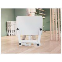 - Bordet kan hurtigt sættes op og klappes sammen igen for diskret opbevaring og en ryddelig arbejdsplads.