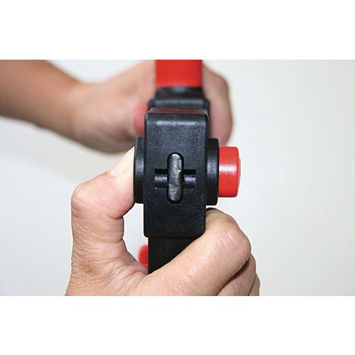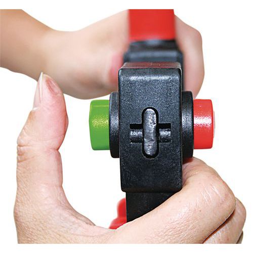 Let at bruge: fra tilspænding til løsning med knap. EZS-tryk for at få nem håndtering af sammenføjningens klemme. Fastspændingskæbe i blødt materiale for at beskytte de dele, der skal bearbejdes. Ergonomisk håndtag i kompositmateriale for at få høj spændekraft.