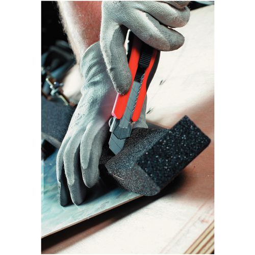 | Varenavn | Kniv med brudblad, bladbredde 18 mm, Blad, materiale: Rustfrit stål, Anvendelse: Skære, Hus, materiale: ABS |