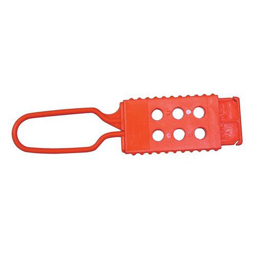 - Blokér alle typer af udstyr sikkert og effektivt. Ikke-ledende låseanordning af dielektrisk nylon. Rummer op til 6 hængelåse. Meget slidstærk trods sin lave vægt. Tilbehør til Hængelås Locked Out.