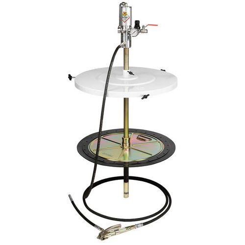 | Varenavn | Fedtanlæg 50:1 til fuldtromle – Raasm, Pumpens maks. udgående luftstrøm: 1500 g/min, Vægt: 21 kg |