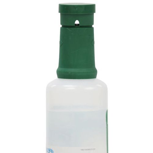 Steril opløsning til skylning af øjet i tilfælde af kontakt med urenheder.
