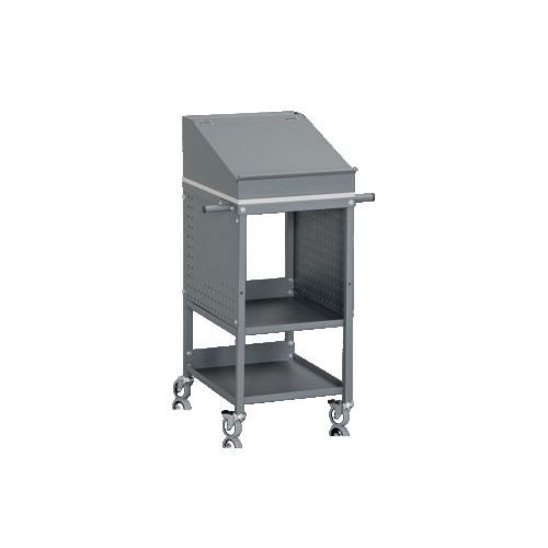 - Vognen har en slidstærk vinylbelagt arbejdsflade og fire 75 mm drejehjul, hvoraf to er udstyret med bremser.