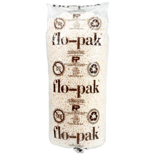 | Varenavn | Flo-pak fyldmateriale til pakning, Materialer: Polystyren, Volumen: 0.5 m³, Understøttet last: 65 g/cm² |