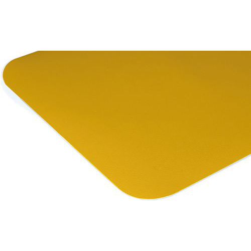 - Den har en tykkelse på 0,5 mm og en farvenuance, der ligner RAL 1003 signalgul.