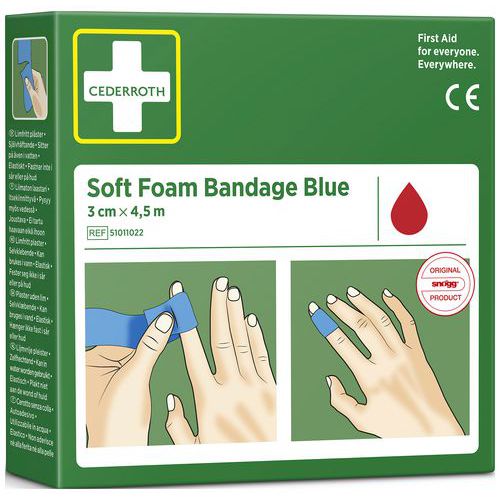 - Cederroth Soft Foam Bandage er et selvklæbende, limfrit plaster, der fungerer både som plaster og bandage.