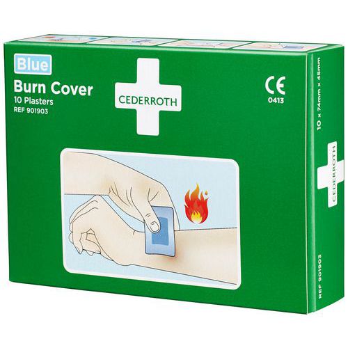 | Varenavn | Forbrændingsplaster, 74 x 45 mm, Antal dele: 10, Farve: Blå, Totalbredde: 74 mm, Totallængde: 45 mm |