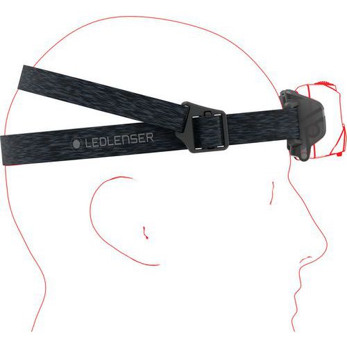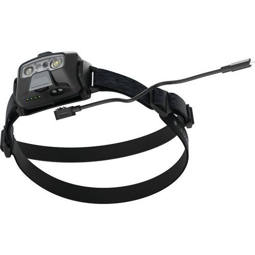 - Genopladelig pandelampe med tre lysstyrkeniveauer og rødt frontlys.