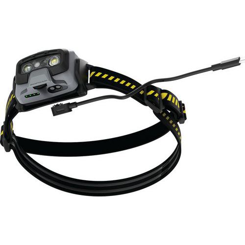 - Genopladelig pandelampe med tre lysstyrkeniveauer og rødt frontlys.