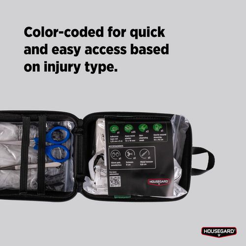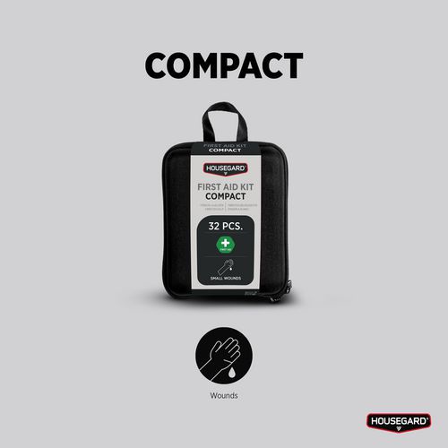 - Housegard Compact er et lille og praktisk førstehjælpskit med det nødvendige til mindre skader.