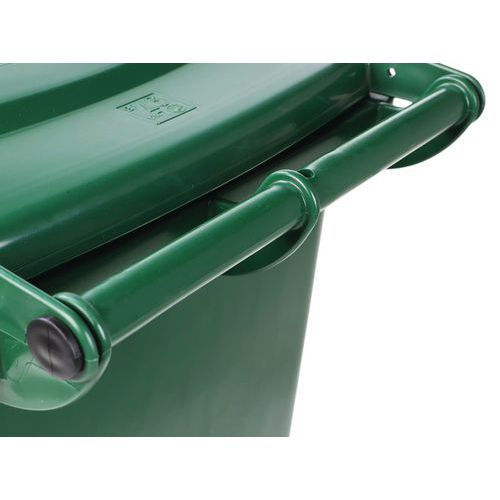 Praktisk og nem at håndtere affaldsbeholder takket være dens robuste håndtag og hjul. Flere farver tilgængelige for at lette affaldssortering og indholdsidentifikation. Solide hjul 200 mm i diameter. Fremstillet af premium high-density polyethylen. UV-bestandig og slagfast. Beholder, der er modstandsdygtig over for kemikalier og beskyttet mod skadelige insekter. Absorberer ikke væsker, vaskbar og steriliserbar.