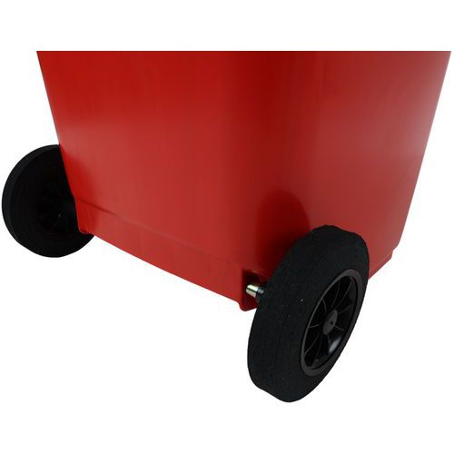 Praktisk og nem at håndtere affaldsbeholder takket være dens robuste håndtag og hjul. Flere farver tilgængelige for at lette affaldssortering og indholdsidentifikation. Solide hjul 200 mm i diameter. Fremstillet af premium high-density polyethylen. UV-bestandig og slagfast. Beholder, der er modstandsdygtig over for kemikalier og beskyttet mod skadelige insekter. Absorberer ikke væsker, vaskbar og steriliserbar.