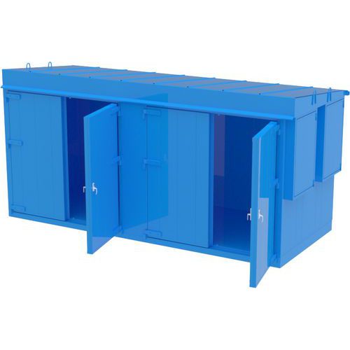 | Varenavn | Gasdepot 614, bredde 6 meter, Udendørsskab EI60, Antal døre: 4, Totalbredde: 6100 mm, Totaldybde: 2480 mm |