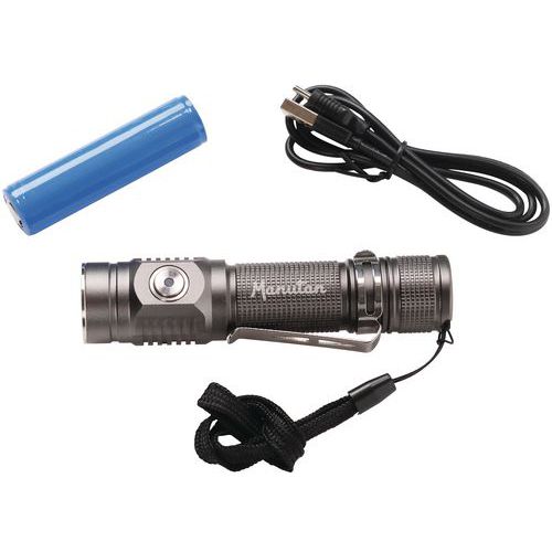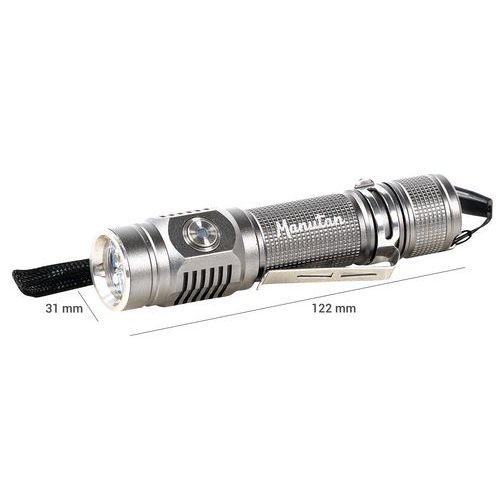 | Varenavn | Genopladelig lommelygte med fokus, Lysstrøm: 1000 lm, Levetid: 3.5 time, Type af pære: Led pære eller modul |