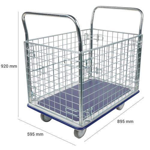 | Varenavn | Gittervogn, Hjul, Ø: 125 mm, Kapacitet: 300 kg, Totalhøjde: 920 mm, Totalbredde: 595 mm, Totallængde: 895 mm |