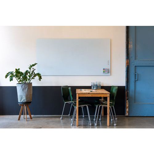 - Den matte overflade på glastavlen giver en naturlig skriveoplevelse og er kompatibel med både kridtmarkører og tørre viskbare whiteboardpenne.