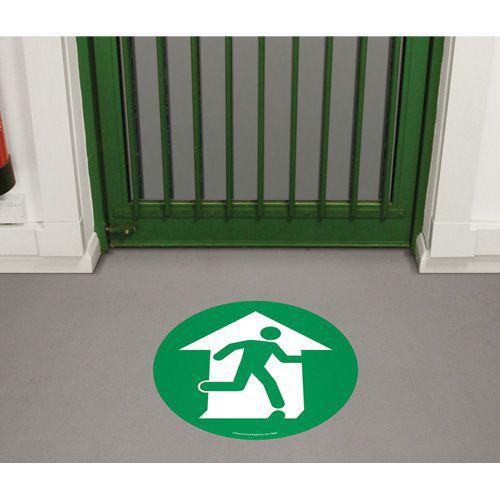 Meget synlige grafiske gulvskilte. Designet til at fremhæve advarsler eller særlige krav. Hvert skilt er 430 mm i diameter. De meget synlige mærker printes på undersiden af en gennemsigtig PVC-film og lamineres derefter på bagsiden med en stærk permanent lim. Mærkerne er egnede til brug på tørre, rene, plane og tætte overflader, og selvom de er designet til gulvet, kan de bruges på vægge eller andre steder, hvor der behov for et slidstærkt permanent skilt.