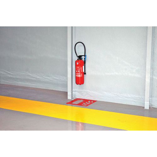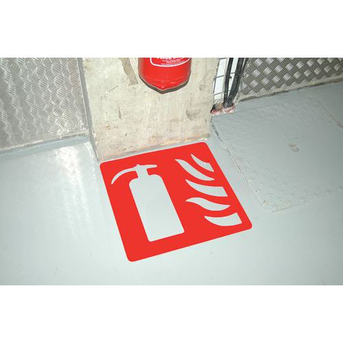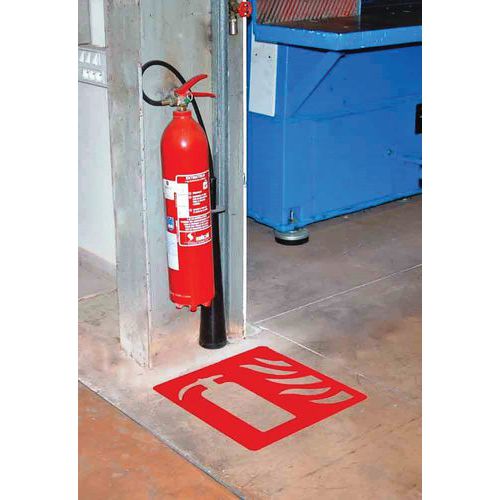 | Varenavn | Gulvmærkat – Brandslukker – Gergosign, Materiale: PVC, Længde: 480 mm, Bredde: 470 mm, Farve: Rød, Skilt |