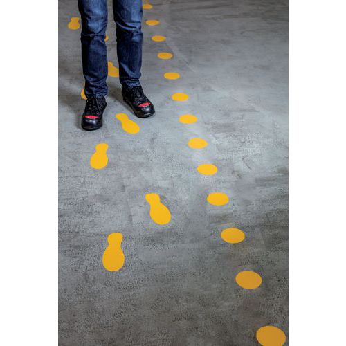 | Varenavn | Gulvmarkering Fodaftryk, Bredde: 90 mm, Længde: 240 mm, Farve: Gul, Besked: Fod |