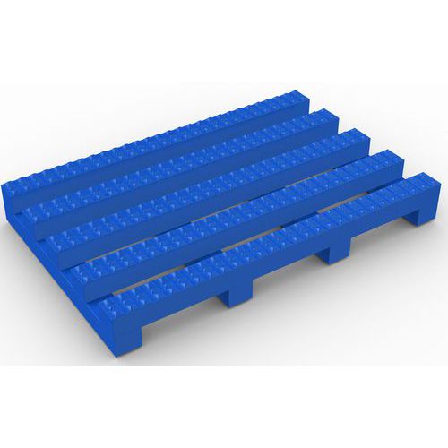 Øger produktiviteten. Mindsker træthed. Det er muligt at bestille kantlister, der gør det lettere for vogne at passere, fastgøringsanordninger til gulv og fastgøringsclips til sammenføjning af gulvmåtter. 100 % genvundet PVC.