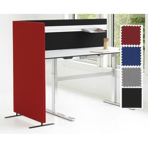 Soneo gulvskærm er ligesom bordskærmen et funktionelt og stilrent indslag på arbejdspladsen. Skærmen kan både anvendes som enkeltstående eller sammenkoblede enheder. I arbejdsmiljøer med en høj lydbelastning giver Soneo god lydabsorption. Skærmen er opbygget af en massiv træramme fyldt med lydabsorberende mineraluldsplade, og er beklædt med stof. Stoffet Event fra Gabriel, der er certificeret som brandbeskyttende, er standard. Ben i sortlakeret stål monteres nemt på underkanten af skærmen, helt uden værktøj. Monterede ben øger den angivne skærmhøjde med 50 mm. Alle dele på Soneo kan genanvendes. Priserne er eksl. tilbehør. Husk at købe fødder til skærmene.