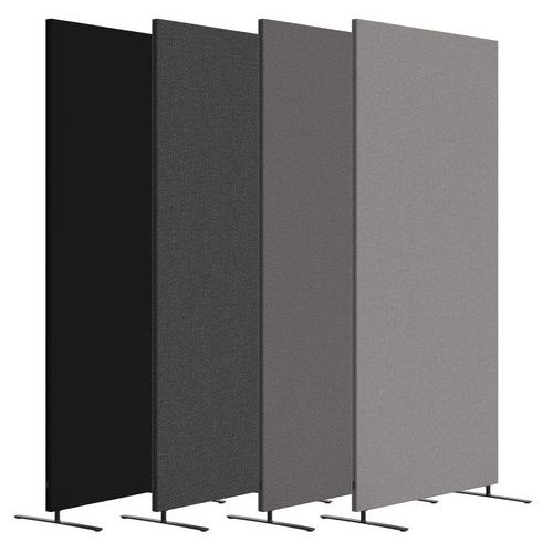 - Hver skærm har en stofbeklædt overflade, en stabil ramme af massivt træ og en lydabsorberende kerne.