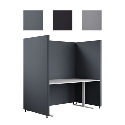 - Båset består af tekstilbeklædte skærme med en lydabsorberende kerne i en stabil ramme af massivt træ.