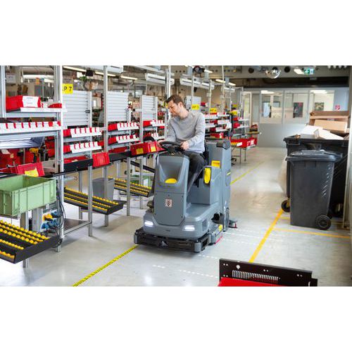- Kärcher gulvvaskemaskine B 110 R Bp Pack er en ride-on kombiskuremaskine til professionel rengøring af store gulvarealer.