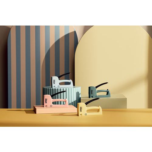 - Hæftepistol produceret i Hestra af 90% genanvendt plast fra gamle køleskabe.